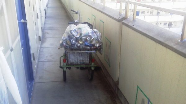 流石にこの3輪車は空き缶を降ろされてから移動されました。廊下もEVも乗車していかれましたが。