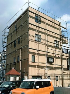 駅の改札口まで100mもないお宅の塗り替えを施工中です。