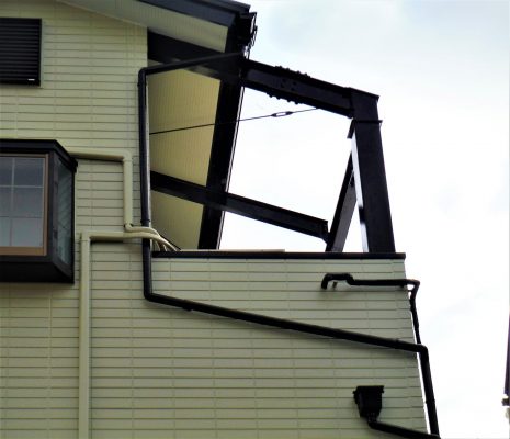 雨樋の修繕は2か所くらいなら、ホームセンターで部品を買ってきて私がやろうと思っていましたが、足場を組んでみると穴が6か所あり、桝も変形していたので板金屋に頼みました。